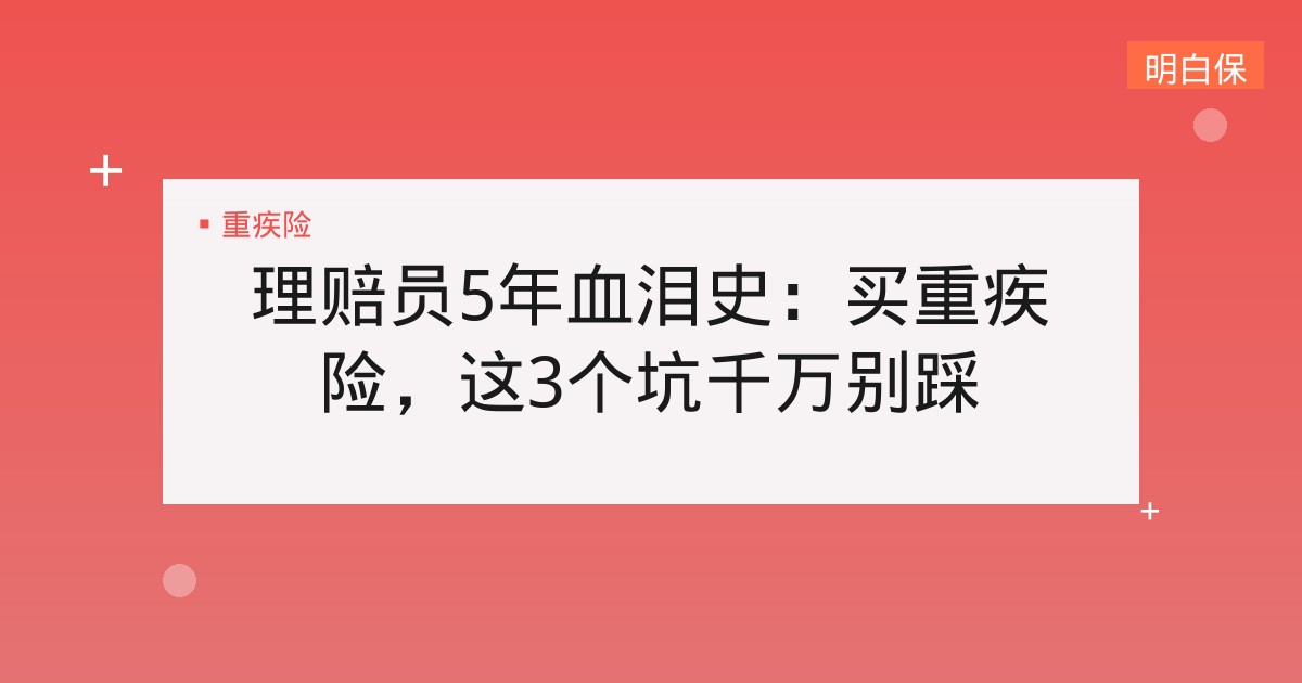 理赔员5年血泪史:买重疾险,这3个坑千万别踩 前保险理赔员5年经验总结:买重疾险最常踩的3个大坑。从给谁买、保额多少到产品怎么挑,用真实案例告诉你如何避开保费倒挂、保... 📅 2026-04-10 👁 4 📁 保险产品, 重疾险