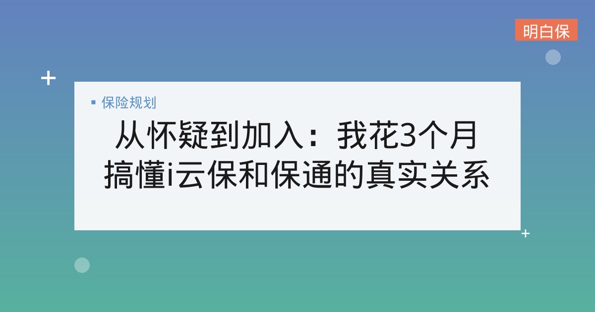 从怀疑到加入:我花3个月搞懂i云保和保通的真实关系 一个精算背景的保险从业者,用3个月时间深度调研i云保与保通的关系。从最初怀疑到客观分析,揭示平台商业模式的双面性,并给消... 📅 2026-04-04 👁 12 📁 保险知识, 投保指南