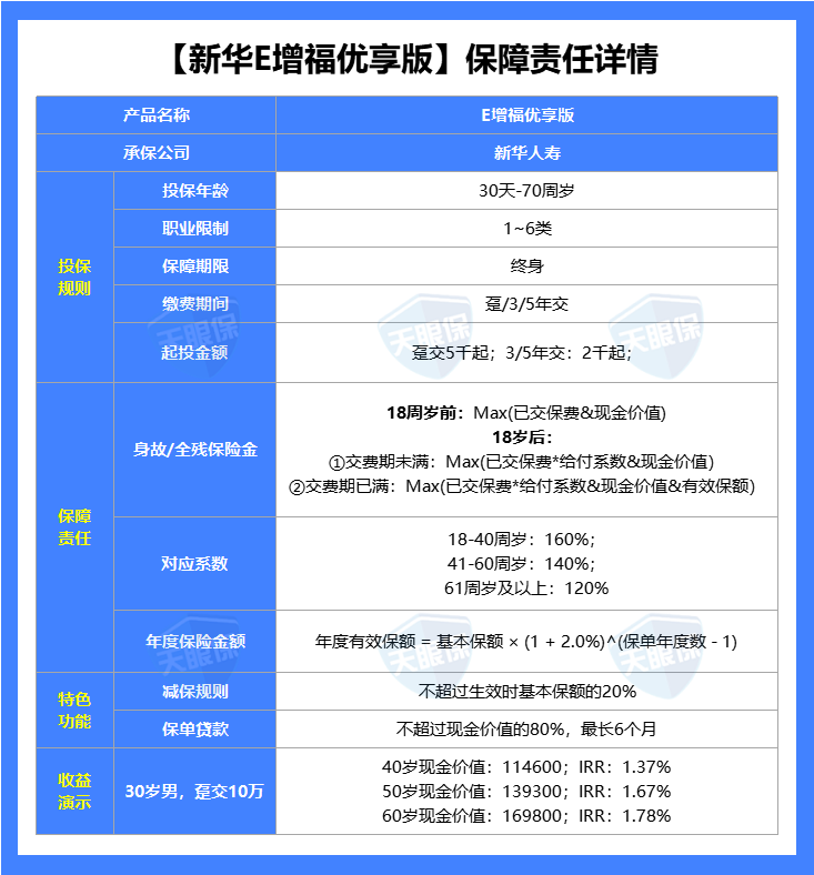② 新华人寿E增福优享版,老七家大公司中,收益最高,减保灵活。