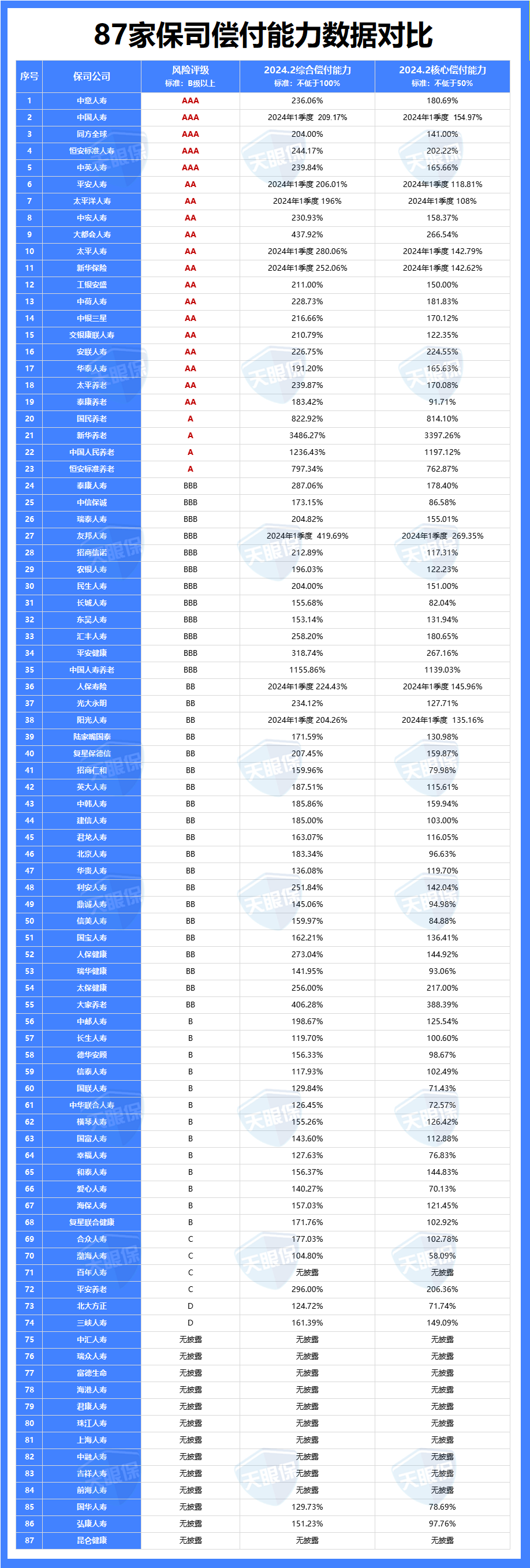 当然了,像风险评级为AA、BBB、BB的,保险公司的经营能力也没啥问题。