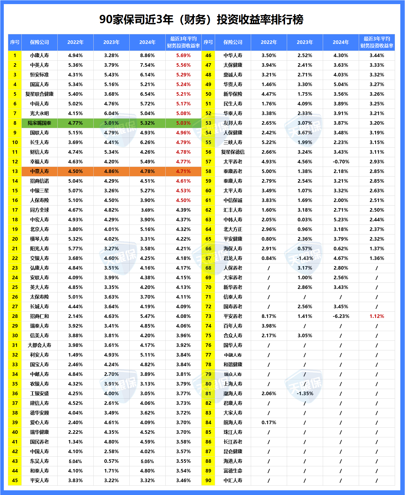 能更全面的反映保险公司的收益情况,目前来看,保险公司能达到的综合收益率最高能达到8%,近三年的平均综合收益率最高能达到7%,下面也会有各家保险公司的综合收益率排名,大家拭目以待。