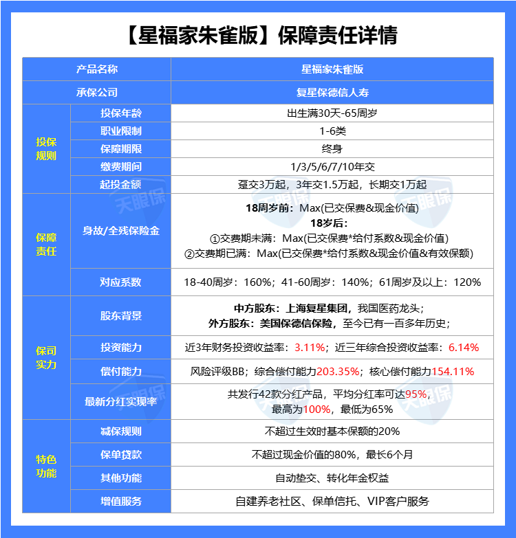 ③ 复星保德信星福家朱雀版,市场唯一一款高保底高演示增额寿,能对接万能账户。