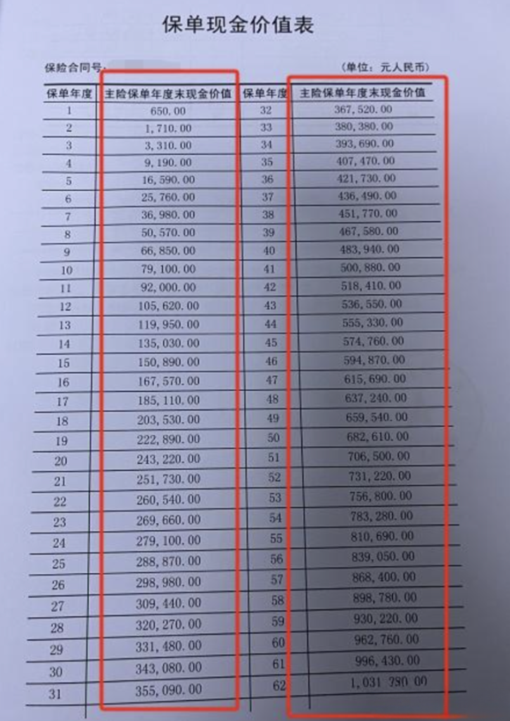 要我说,增额终身寿是最弱智的一种保险,因为简单到只看一列数字就能知道它的收益高低,那就是——现金价值。