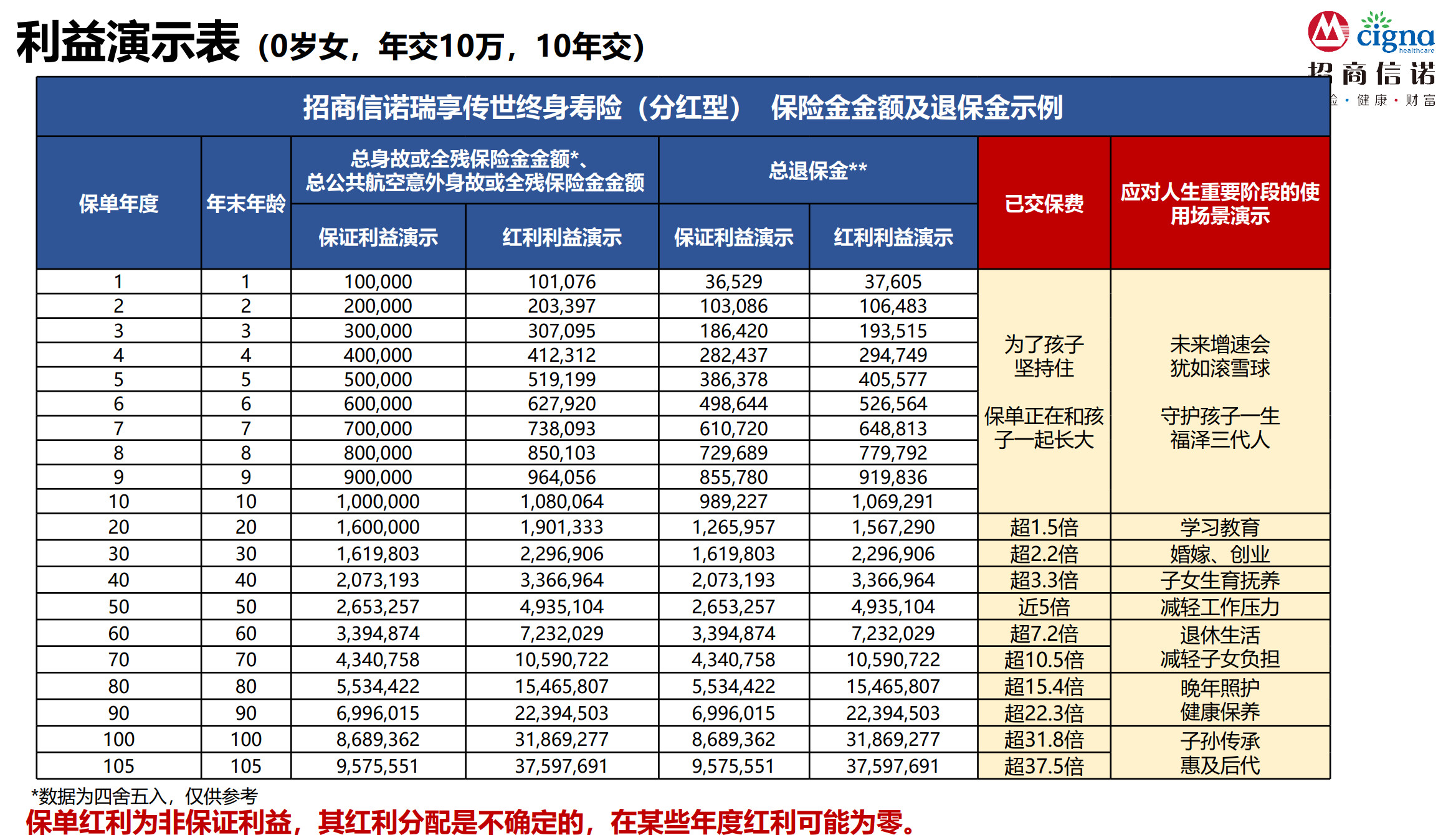 想在市场向好时,博取更高投资回报,招商信诺瑞享传世终身寿险(分红型)是投保首选,大品牌承保,长期演示收益率高,且能享受一流优质的健康管理服务!如对产品感兴趣,可向您身边的保通代理人咨询了解~