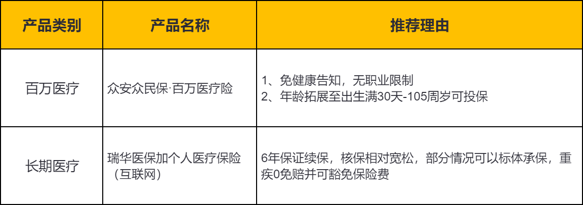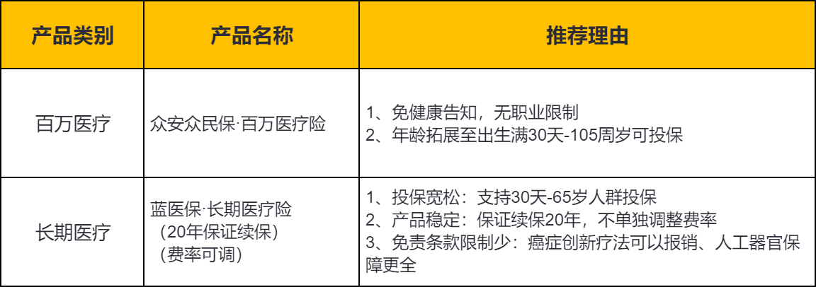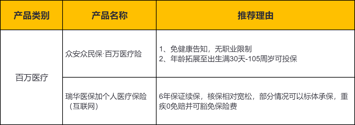 二、非标人群适用的医疗险产品推荐