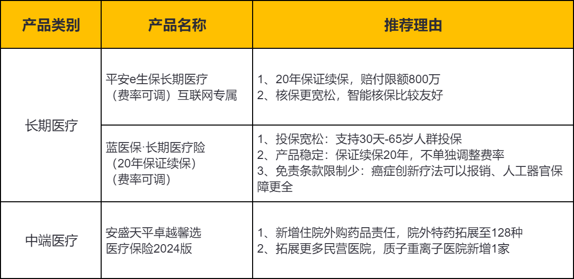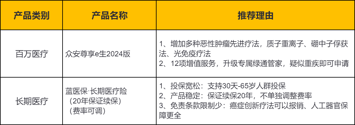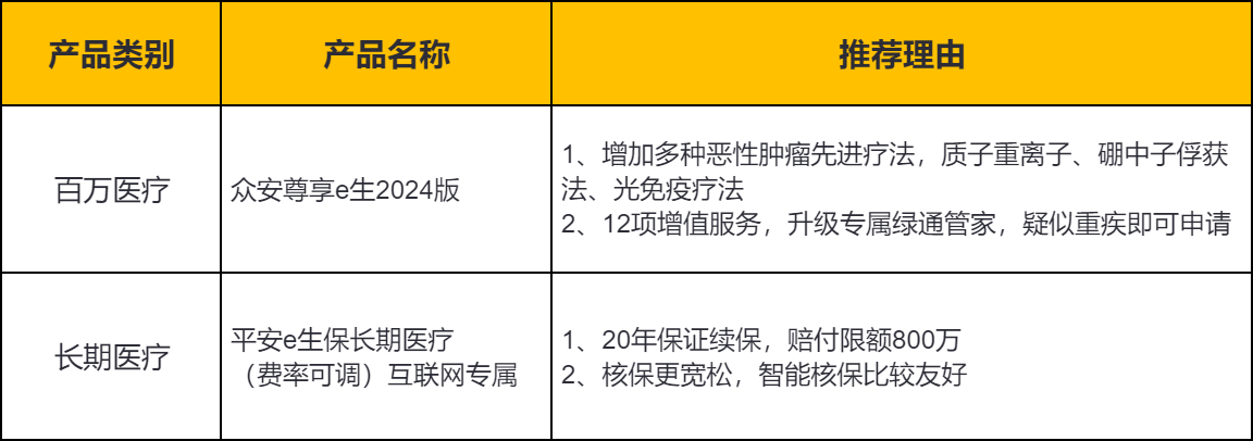 另外还有一种情况,如果投保时身体情况良好,结果保障期间内身体出现了小问题,这个时候想升级保障又怕身体情况已经不能正常投保,也可以看看【美亚臻馨优选中端医疗险(续转版)】、【众安尊享e生·中高端医疗2024(转保专用版)】这两款,0等待期,续转更宽松哦~