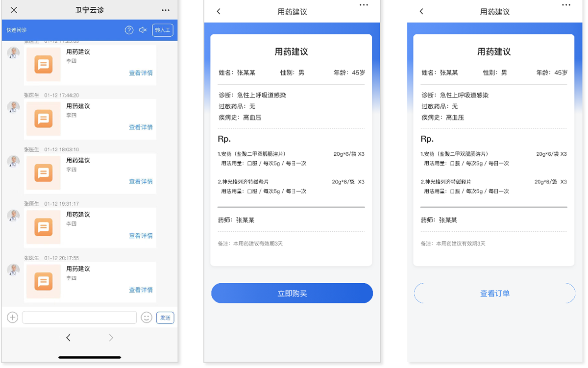 (4)药师咨询会根据患者病症开具对应的用药建议,便于用户下单购药。
