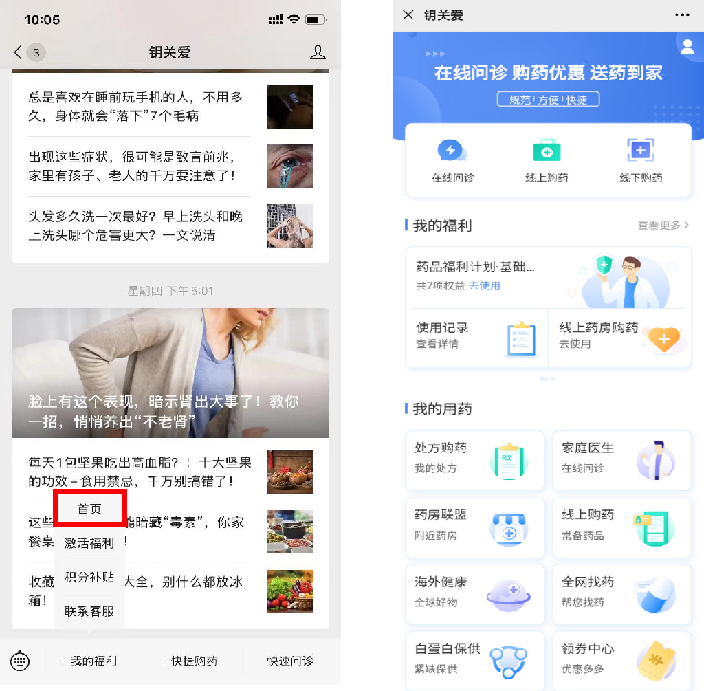 进入“线下药房”,可到线下药店购药时向店员出示钥匙卡电子条码,店员会扫描处理。