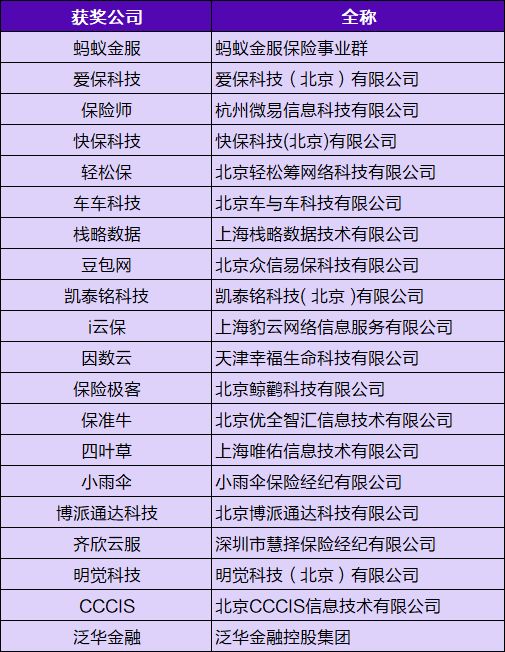2019年度中国保险科技创新20强名单(排名不分先后)
