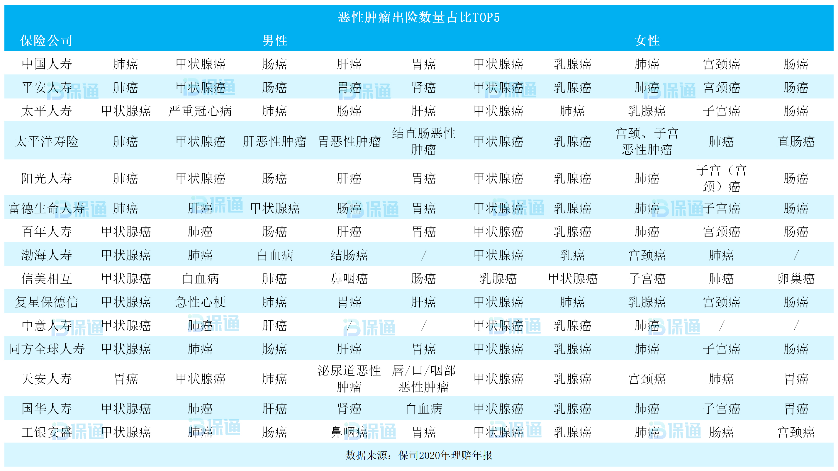 恶性肿瘤是重大疾病理赔的第一大因素,在男女群体中都很高发,但又有所不同。