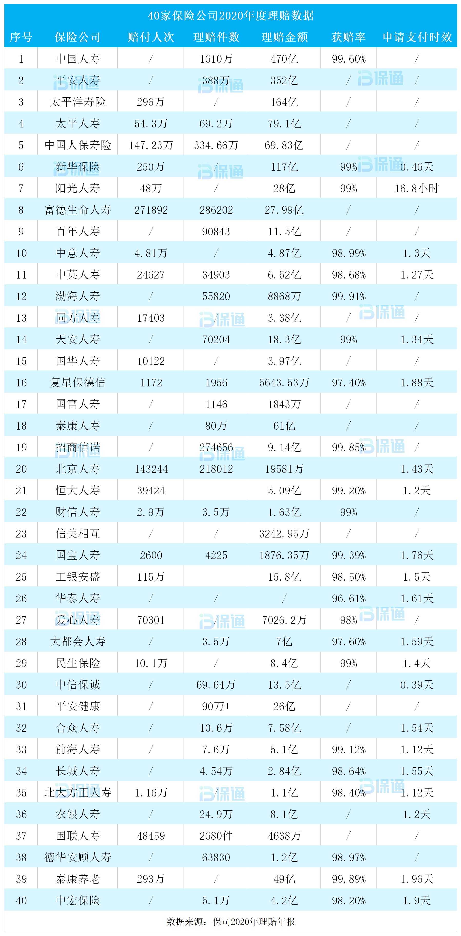 上面这40家保险公司,有世界500强,全年理赔金额最高达470亿,也有你连名字都没听说过的的“小”公司,全年赔付几千万。