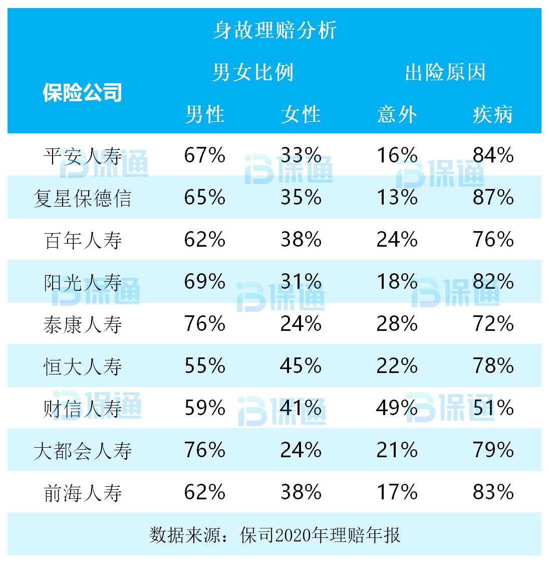 对比身故理赔客户的男女比例,男性明显高于女性,男性朋友更需要寿险保障。