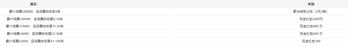 活动期间,出单爆品【众安尊享宝贝 ·少儿高端医疗险】及其他众安活动产品,累计保费达标且满足保费排名,可获得对应的奖励,以下奖励取最高获得: