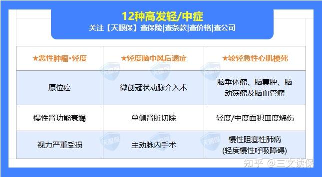 针对高发轻/中症,国家只统一规定了 3 种:恶性肿瘤·轻度、轻度脑中风后遗症、较轻急性心肌梗死,所以需要我们重点去关注,很多产品会在高发病种上暗藏猫腻。