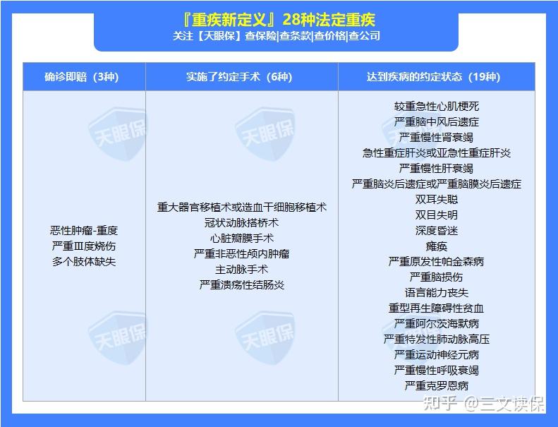 针对“重大疾病”,银保监会统一约定了28种重疾,这28种就占了重疾总体发生率的95%以上,疾病定义由行业协会和医师协会联合制定,保险公司只负责执行: