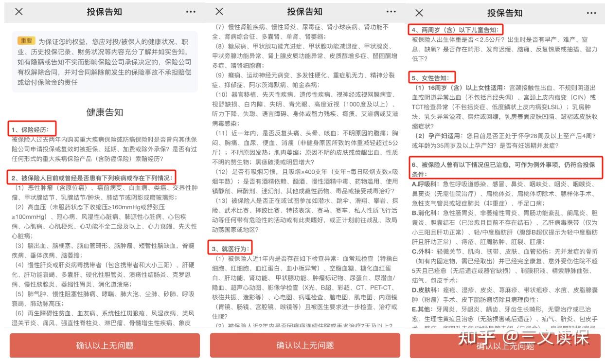 在投保时,专门会有2~3页的健康告知让你填写,例如: