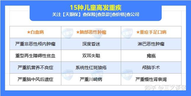 在给孩子买重疾险时,要特别看看这 15 种高发疾病是否包含: