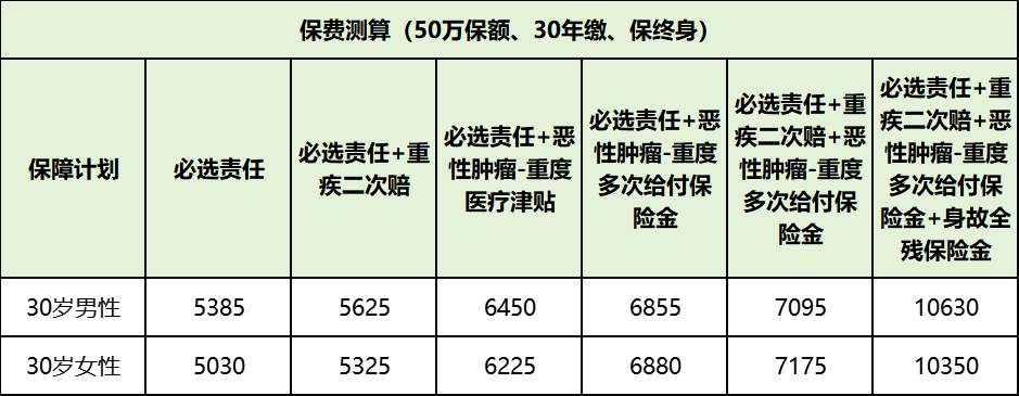 身故或全残保险金:选上之后,一生没得重大疾病,直接身故了,也可以一次性获赔保额。预算充足建议选上,保障更全面,若没选,可以另外补充一份定期寿险,弥补保障漏洞;