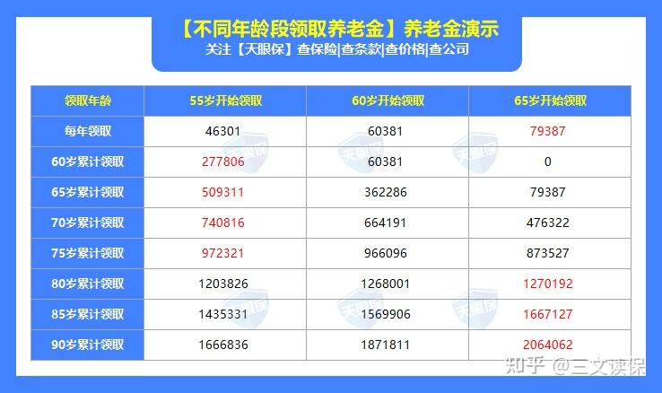 虽然从55岁开始领,每年领取金额是最少的,但一直到75岁,累计领取养老金都是最多的,相当于提前享受了20年的养老金。