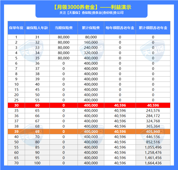 80岁时,领取的养老金已经是已交保费的2.13倍;