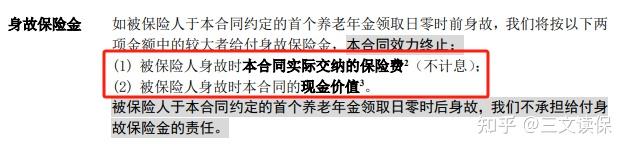 另外,除了能领多少养老金,很多朋友也会关心中途身故后怎么办,毕竟年金险只能在固定年龄段领取,例如50岁、60岁,如果还没领取养老金人就没了,或者领了两三年人没了,岂不是很亏。