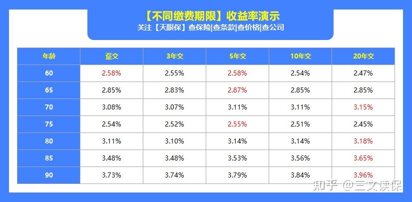 而且我还发现,不同缴费期的收益率各不相同:
