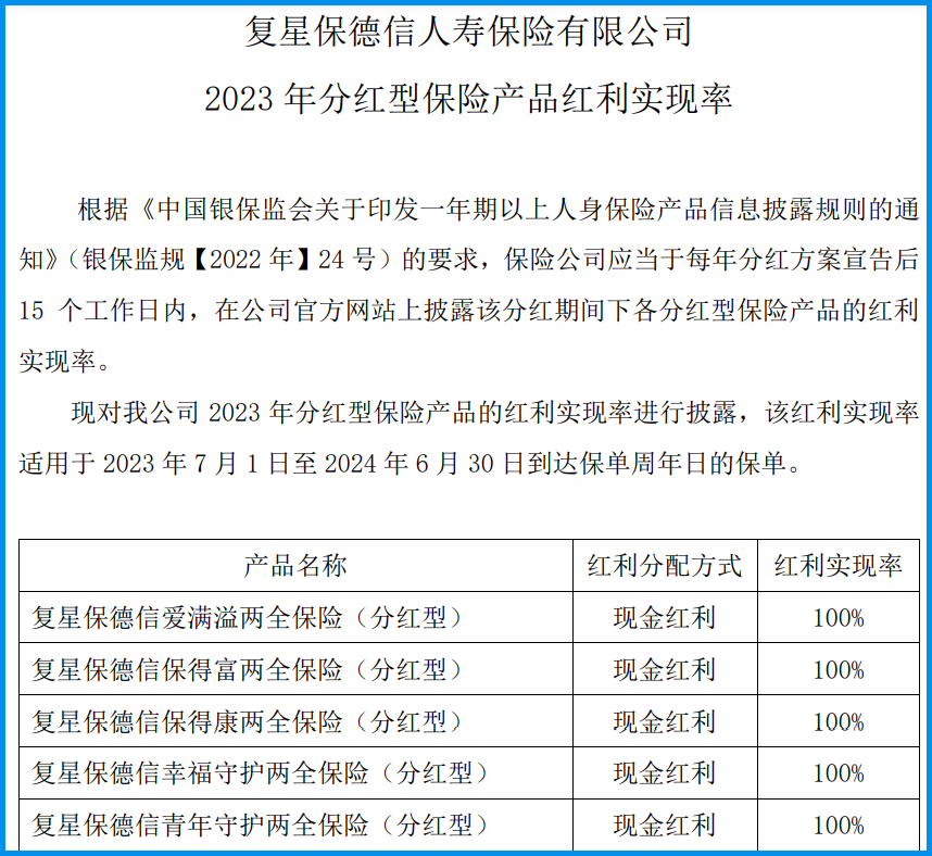 早年,分红这块不太透明,2023 年经过《一年期以上人身保险产品信息披露规则》的新规约束,各家公司都开始纷纷披露分红实现率,它是保单实际派发收益与演示收益(中档)的比值。