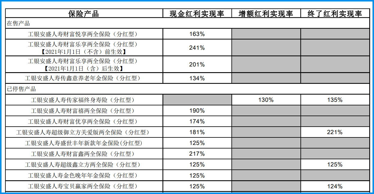 过往对消费者的预期承诺,实际兑现了多少,公开、透明。一般来说,只要分红实现率大于 100% ,我们就可以认为该产品分红派发是达标的,实现率越高,说明保险公司履行保单承诺的能力越高。