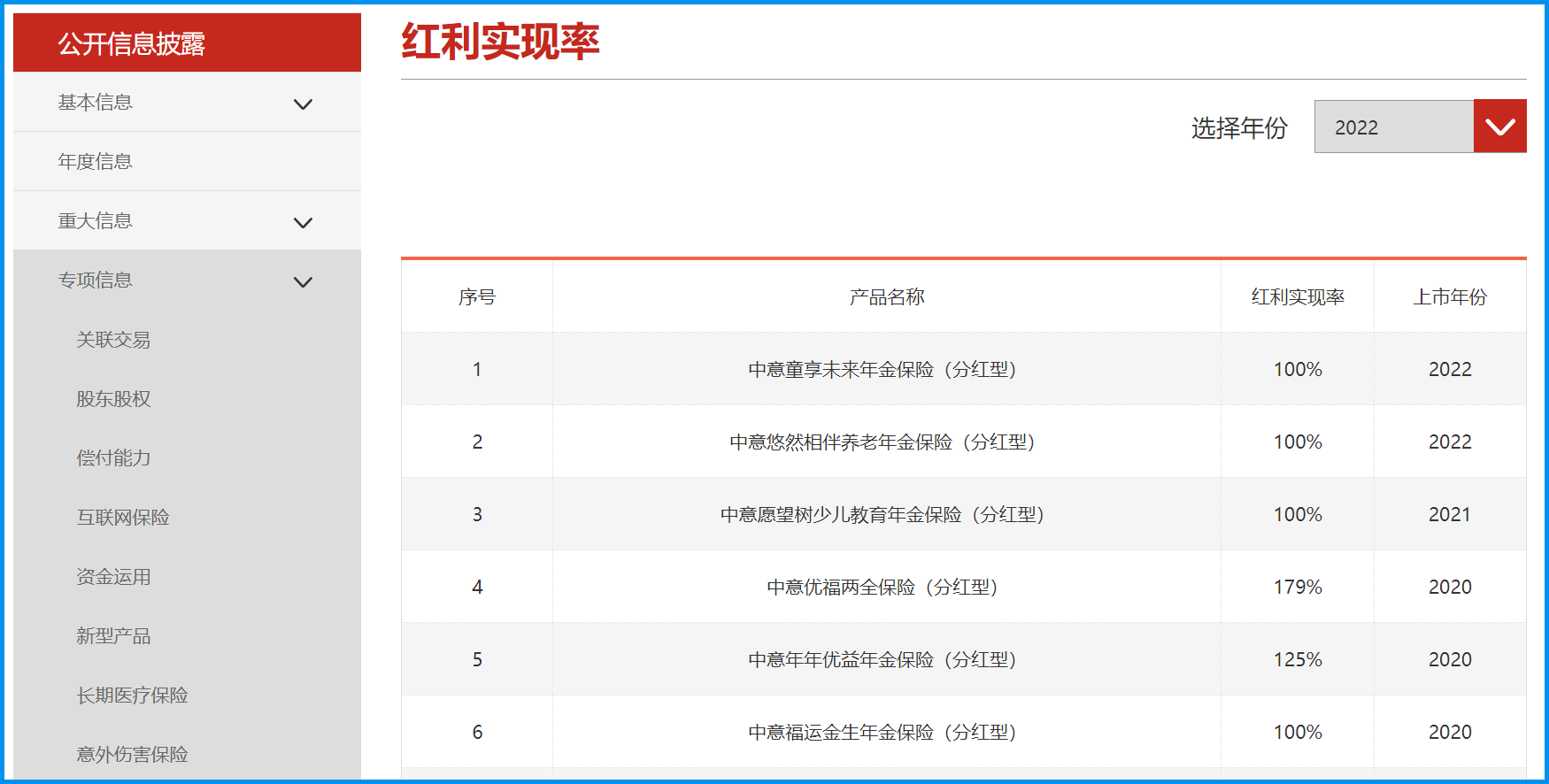 多数保司进入官网,在“公开信息披露”里的“专项信息”里的“新型产品”里,可以查询到分红实现率。