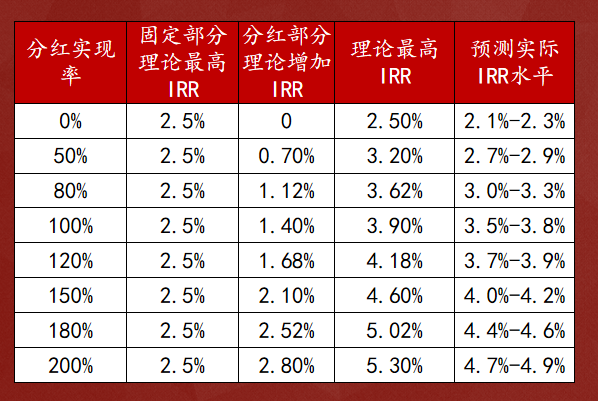 下图是预期回报的简单测算,在市场利率持续下行的大环境下,分红险可谓诱惑力十足。