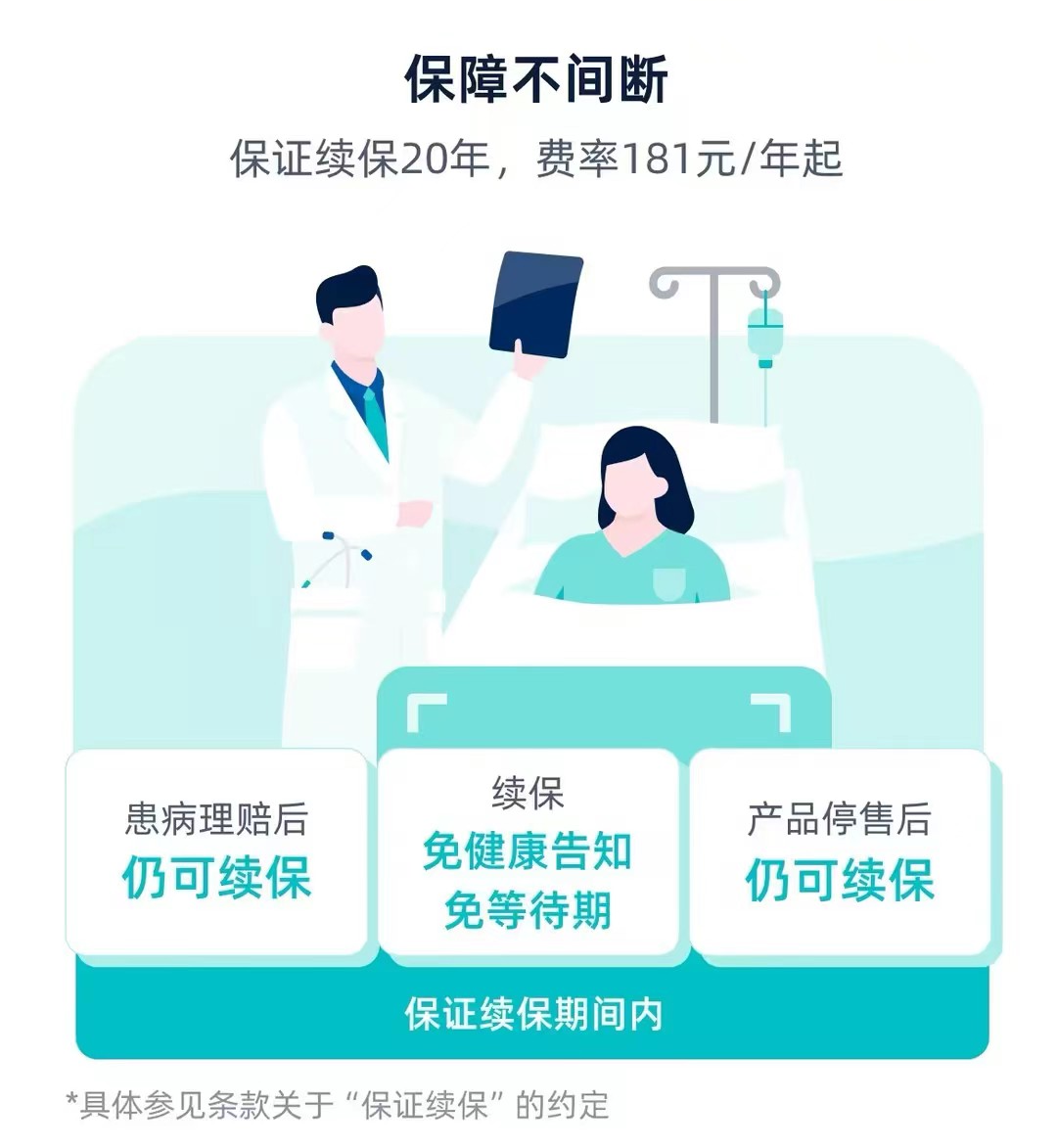 简单点说,基本上只要我们自己想续保,按时缴纳保费,就能一直续保下去,妥妥获得20年的长期稳定保障。