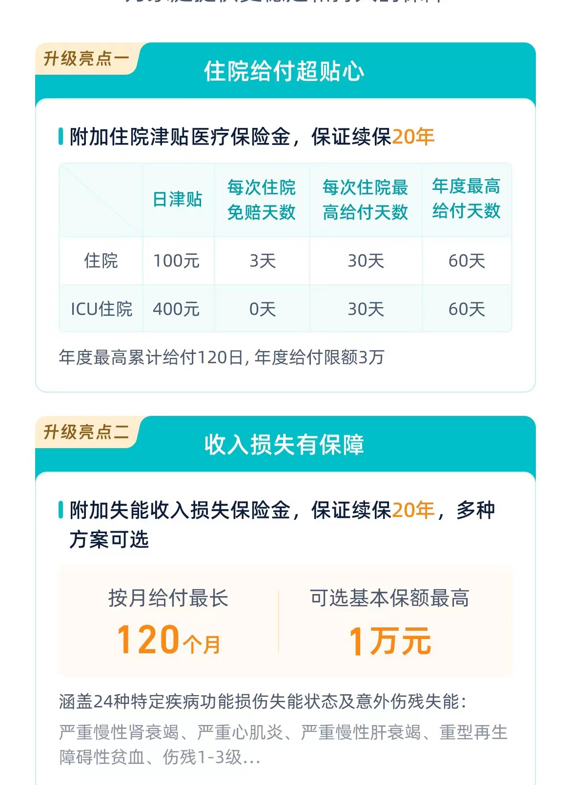太保附加互联网失能收入损失保险金:确认达到失能状态,每月领一笔补偿金,弥补失能带来的收入损失,适合家庭经济支柱投保。