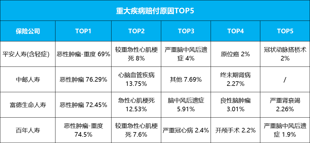 无一例外,理赔率最高的重大疾病,统统都是癌症!占比基本都在70%以上,高的能达到90%以上!