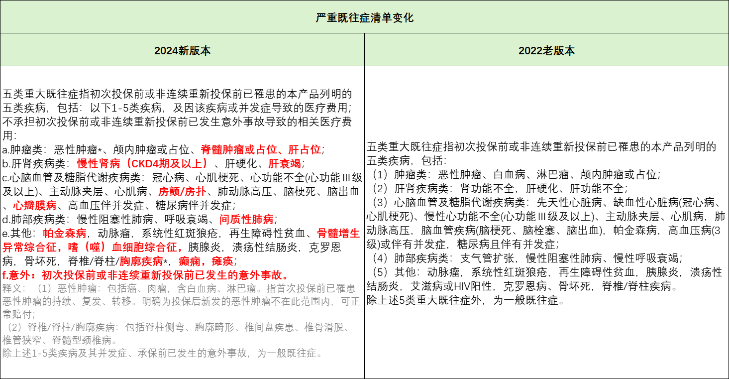 根据历史理赔情况,众民保最新版对严重既往症清单进行了优化,更加清晰明确!具体变化看下图: