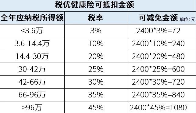 税优健康险是可享受个人所得税减免政策、由商业保险公司承保的健康保险。按规定,投保人可以享受每年2400元(每月200元)予以税前扣除的福利,最多省税1080元。