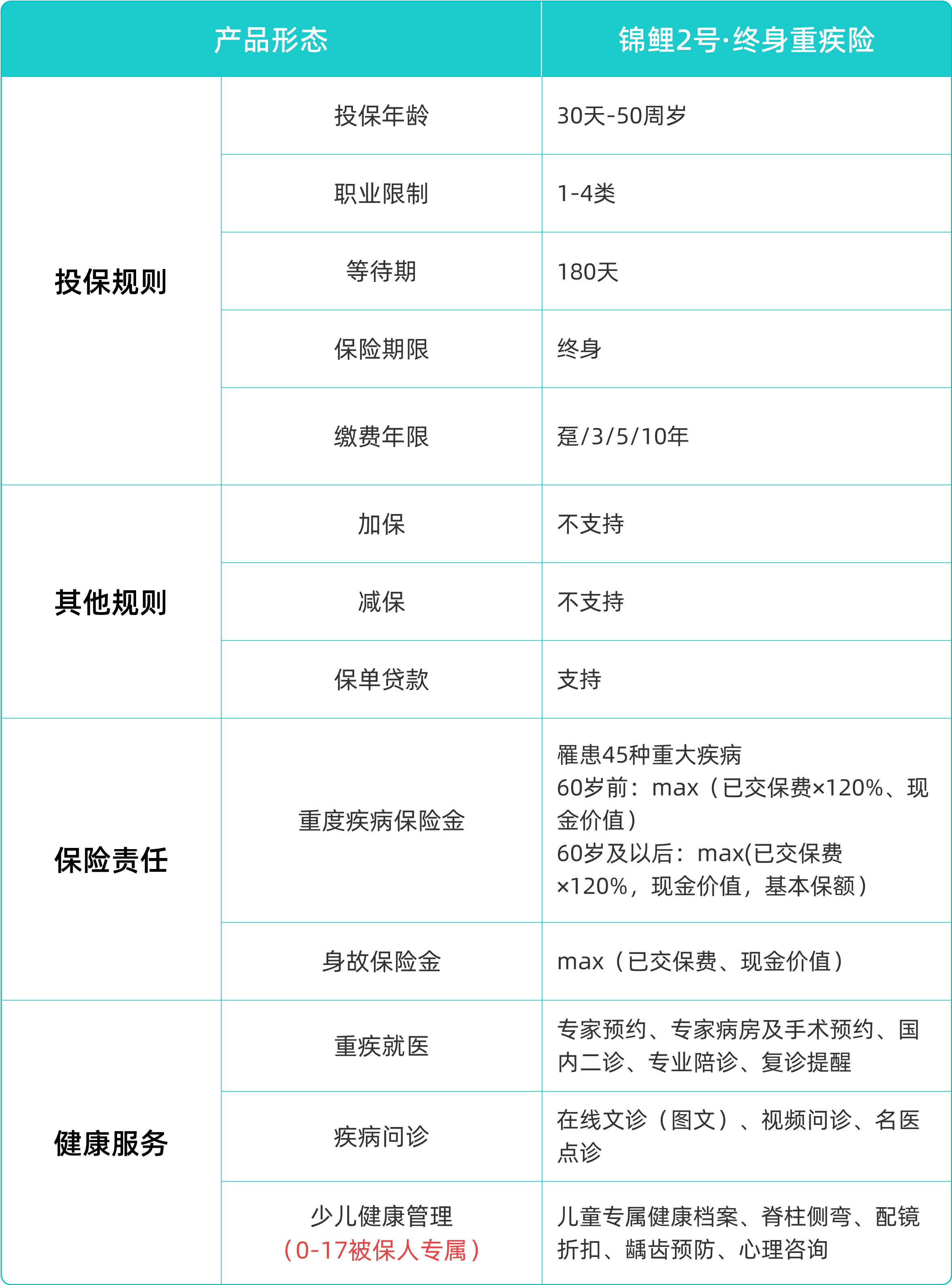 除了财富和健康的双重保障,锦鲤2号·终身重疾险更出色的是特别提供了优质的健康服务,包括重疾就医、疾病问诊、少儿健康、心理健康等系列服务。