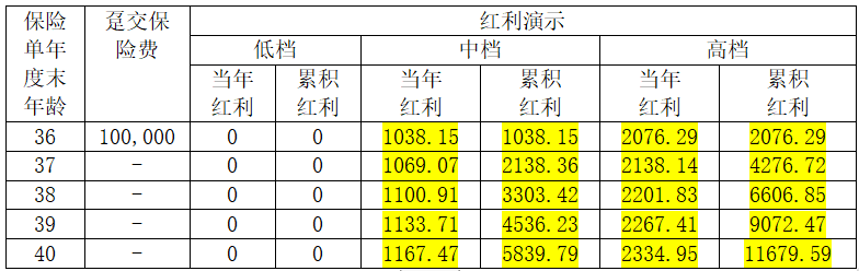上述利益演示基于公司的精算及其他假设,不代表公司的历史经营业绩,也不代表对公司未来经营业绩的预期,保单的红利水平是不保证的,在某些年度红利可能是零。
