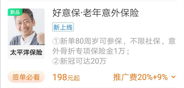 如此碾压市场的老年意外险,保费198元起,推广费居然还高达20%+9%,真是自买推广两相宜,快去一键转发客户出单吧!