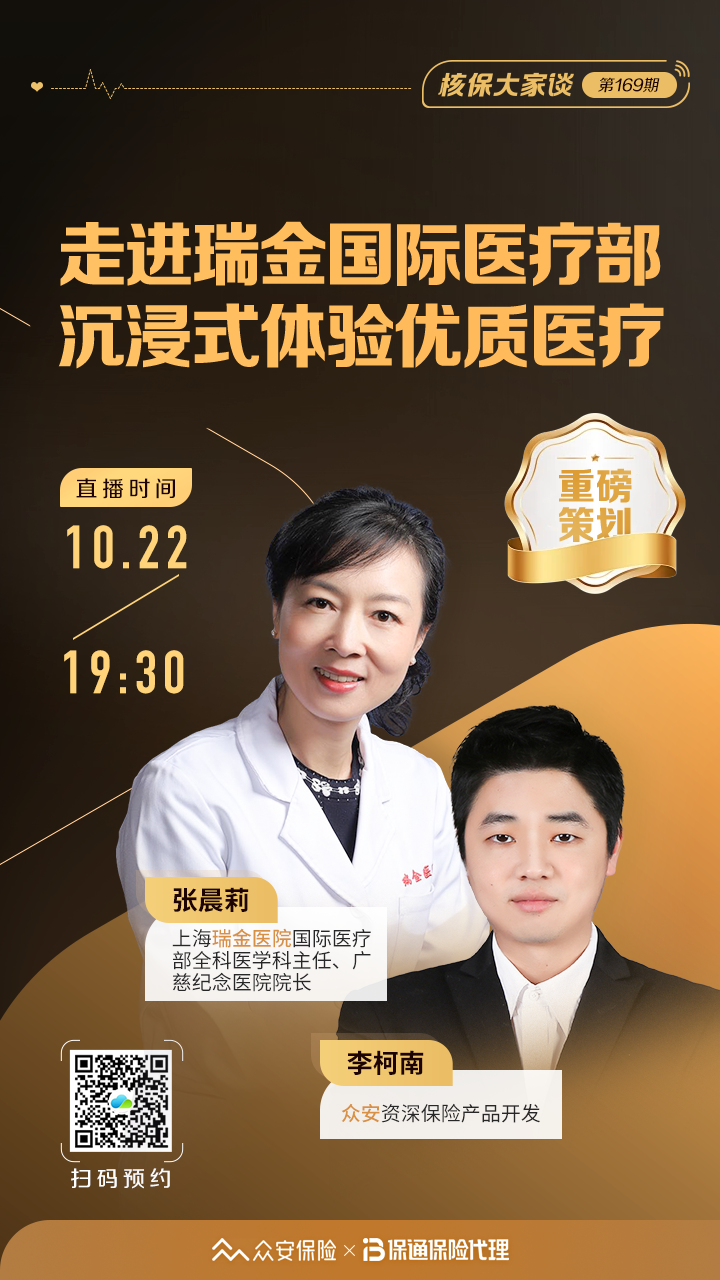 邀你一起:走进瑞金国际医疗部,体验优质医疗资源由 baoxianshi2025年11月30日在顶级公立医院国际部看病 是一种什么样的体验? 你是不是也很好奇?! 10月22日晚上7点半 带你走进全国TOP5医院 上海瑞金医院国际医疗部 👇扫描下方二维码,一键预约直播👇 标签:乳腺结节华贵大麦定期女性定期寿险意外险投保甲状腺老人 发表回复 取消回复您的邮箱地址不会被公开。 必填项已用 * 标注显示名称 * 邮箱 * 网站 评论 * 在此浏览器中保存我的显示名称、邮箱地址和网站地址,以便下次评论时使用。