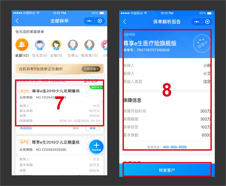 当然,您也可以自行在保单列表中,点击显示 “解析成功” 的卡片来进入相关保单的解析报告哦。