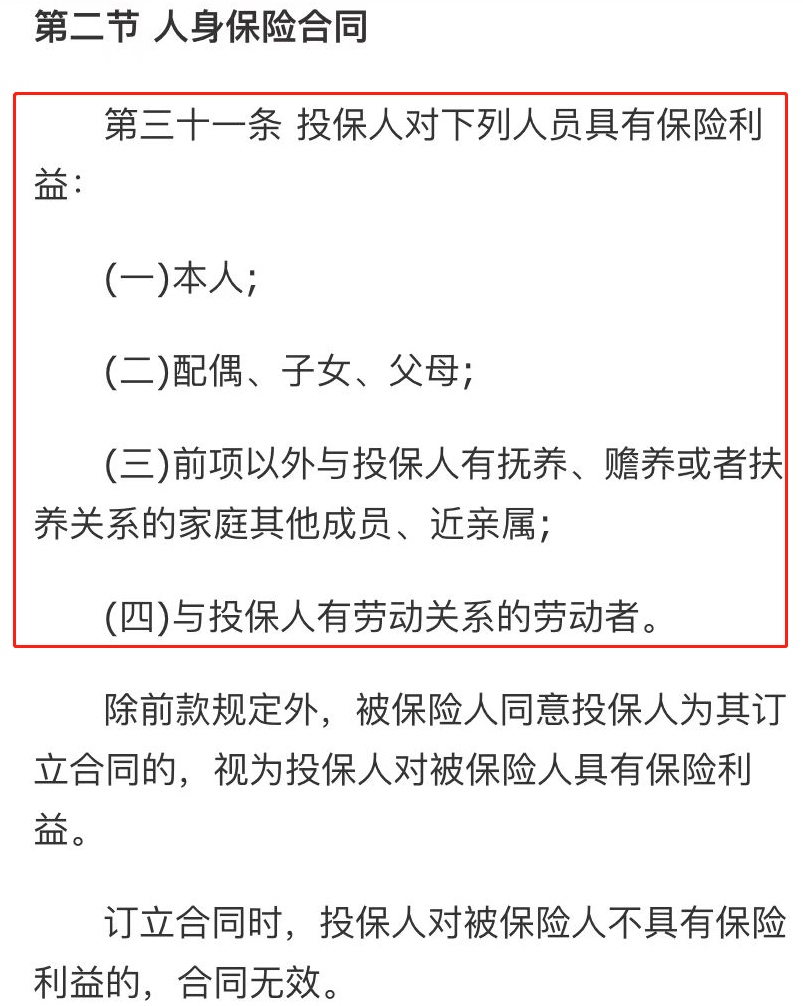 也就是说,男朋友不能给女朋友买保险,爷爷奶奶通常不能给孙辈买,儿媳、女婿一般也不能直接为公婆、岳父母投保,买了属于无效保单,个别例外情况除外!