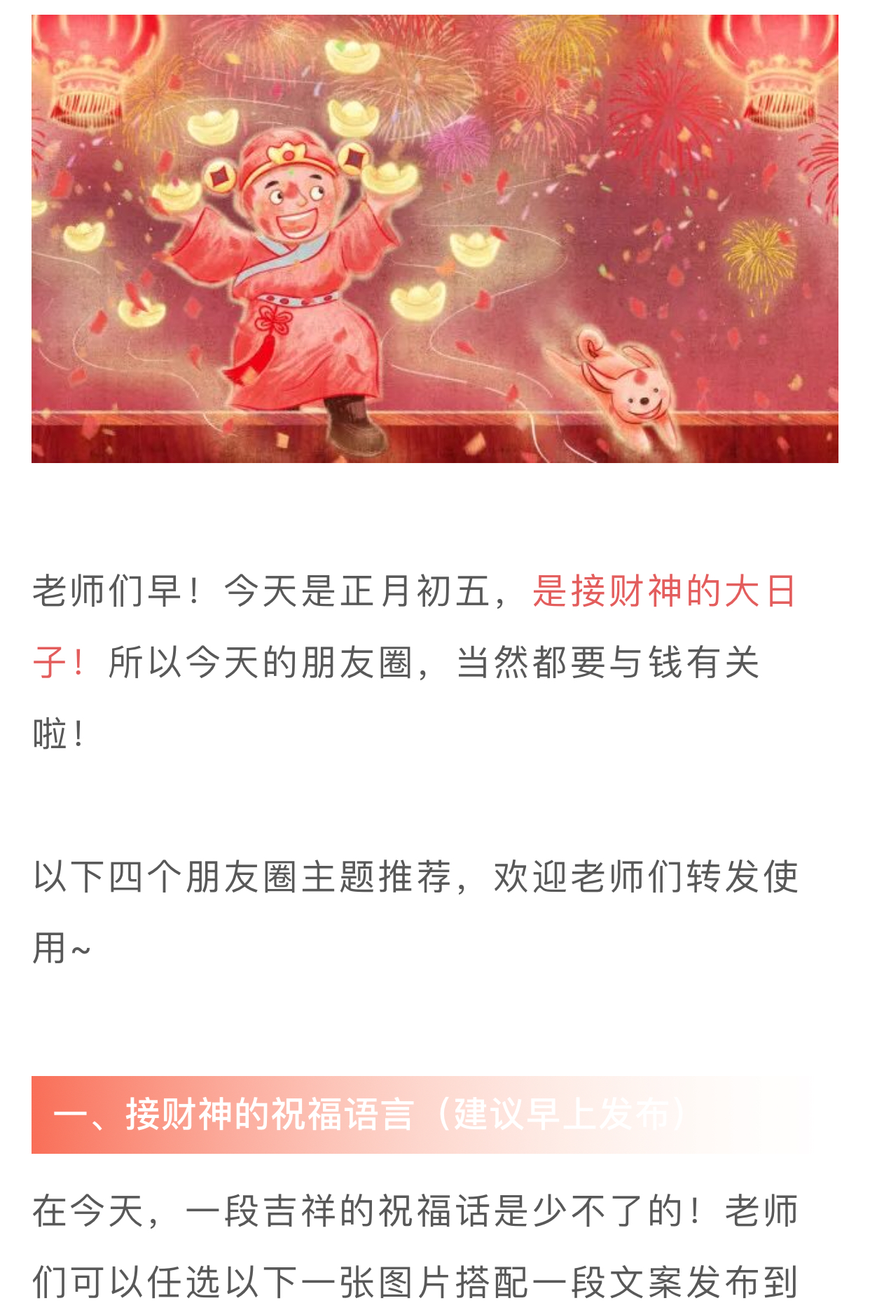 清晨一记鞭炮响,转身滚滚财源进!抬头遇见财神临,低头金砖踩脚底!大年初五财神日,恭喜发财你懂滴!