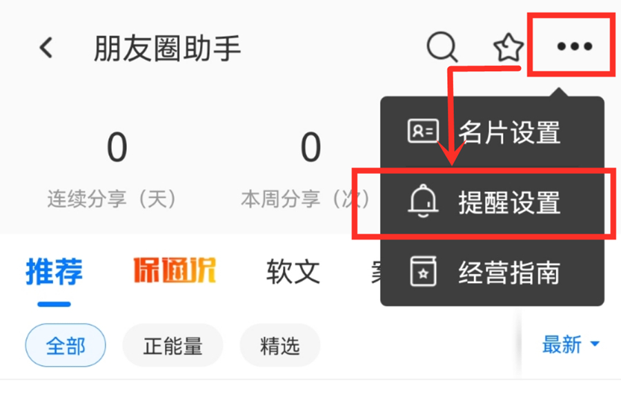 点击右上角的【· · ·】,有一个【提醒设置】功能。