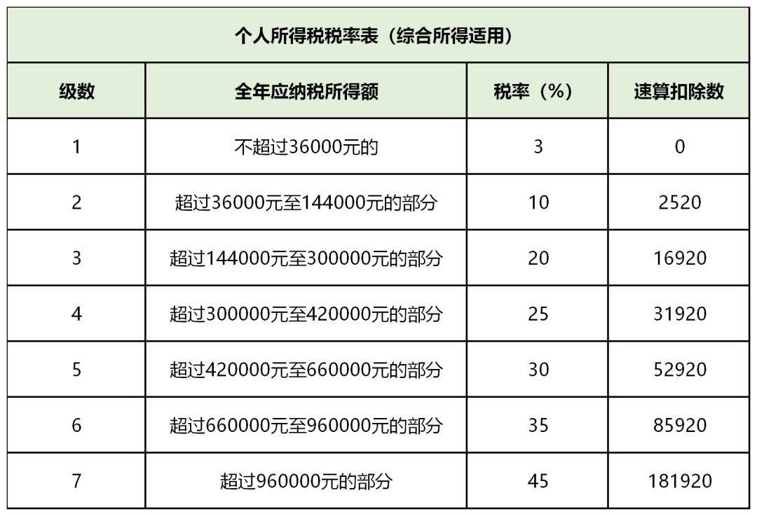 适用税率和速算扣除表,参照下表: