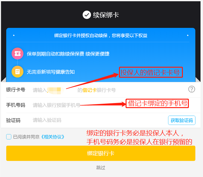 一定要如实填写投保人本人的手机号和银行卡!!!