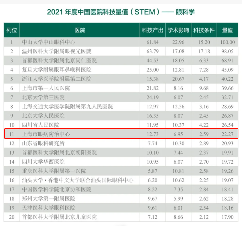 上海市眼病防治中心(上海市眼科医院)是上海市唯一一家市级公立眼科专科医院,承担着上海市眼病预防与治疗的双重功能。医院1942年成立,涌现诸多国家级学者、专家、教授。医院设有眼科中心、视光中心、防治科等重点业务科室,拥有各类国际先进的眼科诊疗和手术设备,在儿童青少年近视防控、近视激光手术、斜弱视治疗、白内障精准化手术、微创玻璃体视网膜手术、微创泪道激光等医疗方面独具特色。