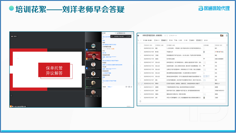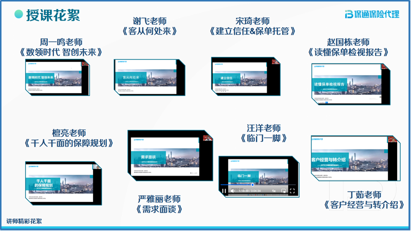 本次培训群英荟萃,得到总分公司各位领导的关注支持。开训特别邀请到业务培训发展部负责人胡总做致辞。随后由总部课程研发周一鸣老师、北京赵斌老师、山西宋琦老师、上海赵国栋老师、湖北严雅丽老师、安徽檀亮老师、湖北汪洋老师,北京丁茹老师,八位不同地区的优秀星耀讲师分别授课,还请到总部负责保单托管的产品经理刘洋老师,进行早会答疑,给学员带来保险3.0时代全新的营销思维冲击。