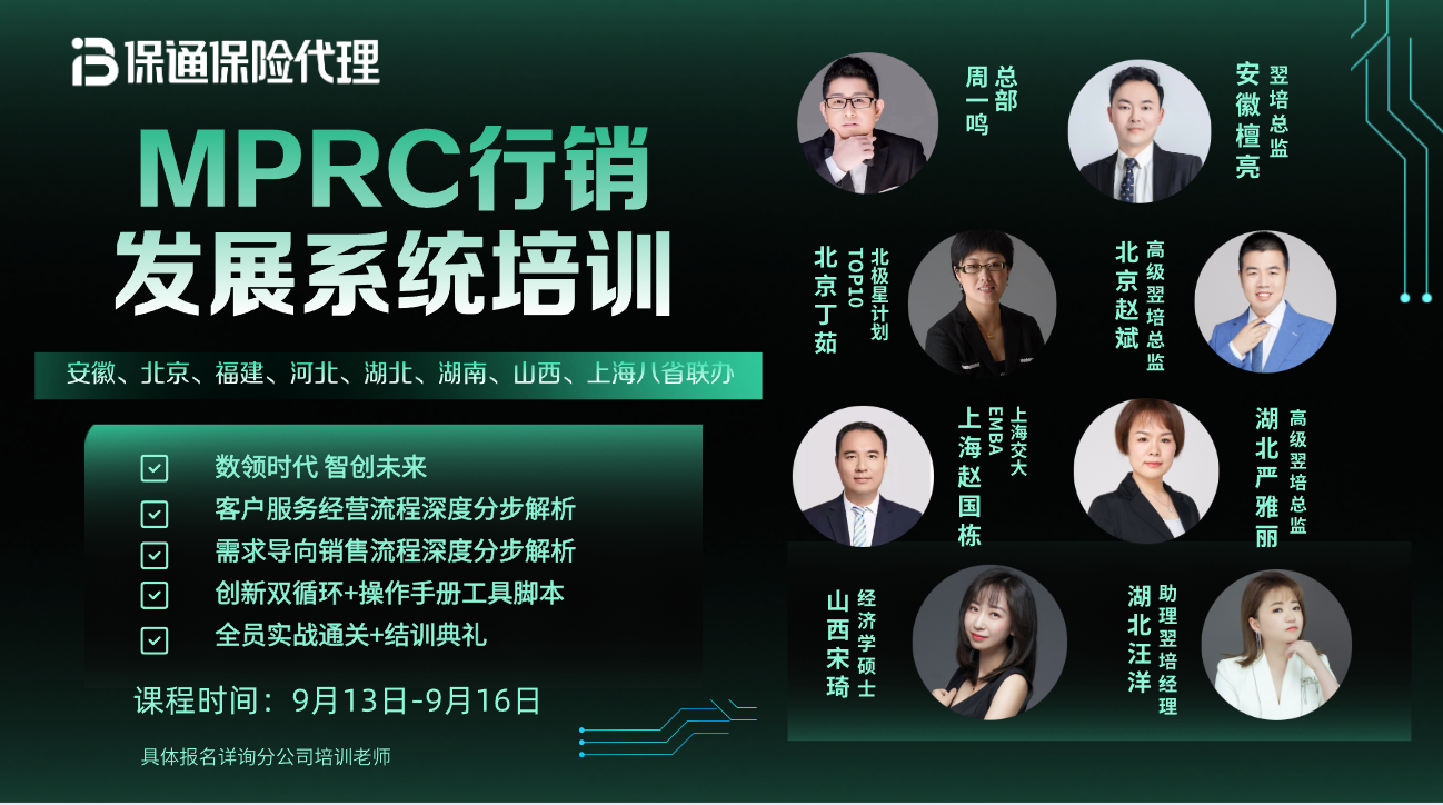 为更好的帮助代理人理解MPRC销售及发展流程的底层逻辑,赋能代理人掌握线上平台和工具的使用方法,进而实现寿险事业的永续发展,8家分公司重磅推出总部专项认证培训—MPRC行销发展系统培训。