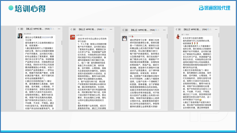 MPRC行销发展系统培训,意在形成代理人自我的造血系统,批量化复制人才,让代理人在工作中“边飞边学”,确保代理人能同等践行公司服务理念,给到客户更好的体验。