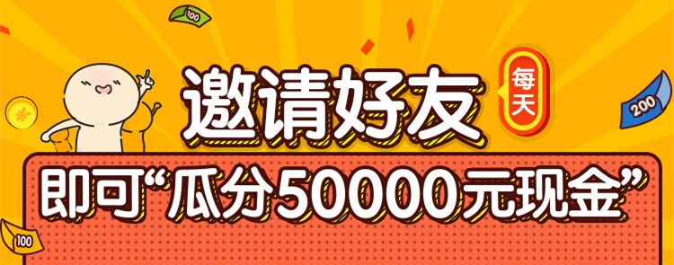 您每天只要邀请 3 个人成功注册就可以瓜分当天的 50000 元!